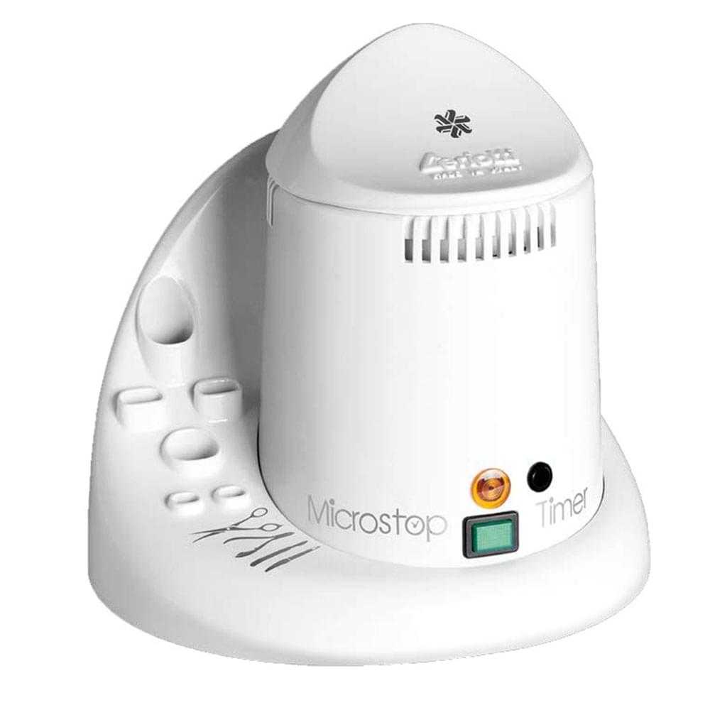 Microstop timer можно назвать самым скоростным стерилизатором. Он уничтожает бактерии посредством высокой температуры шариков. Прибор не занимает много места, его легко транспортировать. Аппаратом очень легко пользоваться, поскольку лампочки индикатора сообщают, когда обработка поверхности закончена. Отличный помощник для домашних мастеров, которым приходится срочно выезжать на выезд. Для дезинфекции достаточно 20 секунд, и инструменты будут очищены.