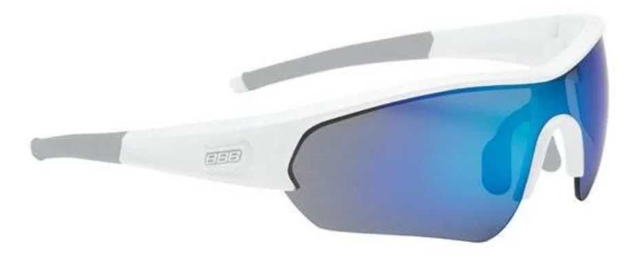 Современного дизайна конструкция в белой оправе (полуободковая) для мужчин и женщин с круглыми линзами (желтыми и прозрачными) из поликарбоната, с защитой от ультрафиолета и зеркальным покрытием. Половина прямых дужек прорезинена, чтобы надежно фиксировались на голове. Для хранения имеется футляр.