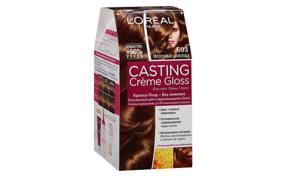 Средство, производимое французской маркой Loreal, одной из самых первых иностранных компаний, появившихся на рынке косметики в России. Краска имеет достаточно жидкую консистенцию и подходит для стойкого окрашивания и закрашивания седины. В цветовой палитре представлено порядка 20 оттенков, которые при необходимости смешиваются и получается нужный оттенок. Средняя цена: 700 рублей.