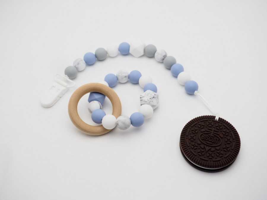 Характерным отличием зубного прорезывателя является изготовление на 100% из силикона. Данный материал достаточно жесткий для устранения дискомфорта и в то же время в меру мягкий для исключения травм десен. Благодаря этому изделие можно грызть по всему периметру.
