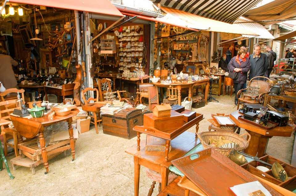 Для любителей раритетных, антикварных вещей блошиные рынки, специальные магазины, небольшие лавки представляют настоящий рай. Здесь можно купить все: работающую модель старинного фотоаппарата, редкие часы, серебряные наборы посуды, уникальную мебель от «провансальского» стиля до моделей, создаваемых во времена Людовиков XV, XVI. Книги, изданные при жизни их авторов (Хемингуэя, Ленина), картины, старинные игрушки для детей, одежду.
