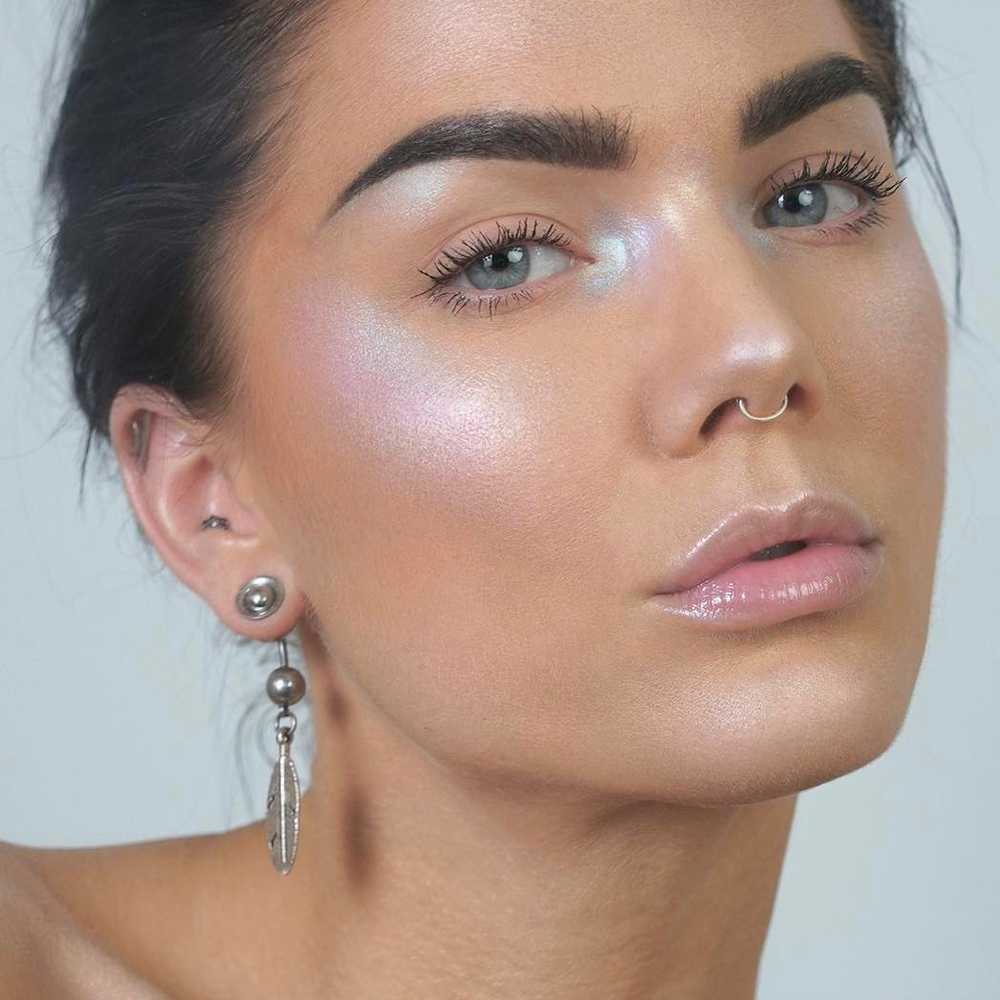 Наносить хайлайтер следует на чистую кожу лица или поверх тональной основы. Для макияжа подойдет спонж или круглая кисть.