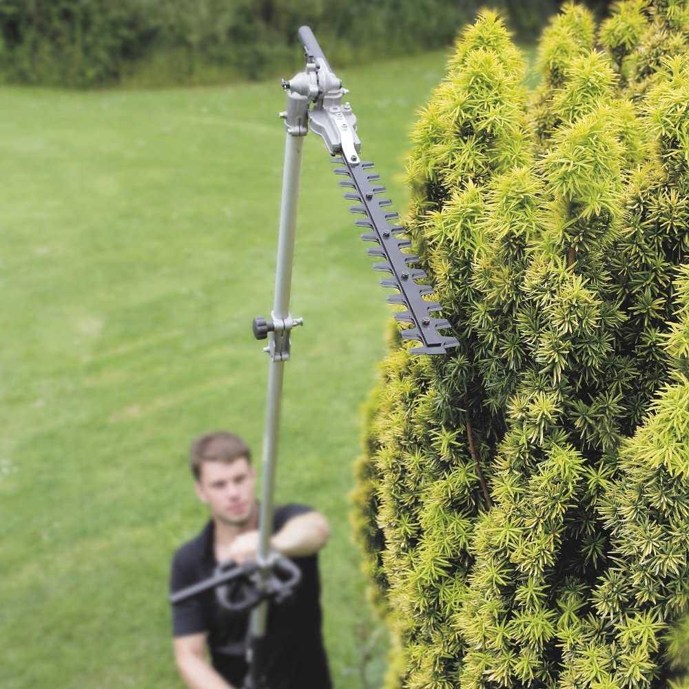 Телескопическая рукоятка обеспечивает дополнительный комфорт во время работы, так как позволяет легко удлинить инструмент. При помощи такой опции человек сможет без особого труда дотянуться до макушки дерева.