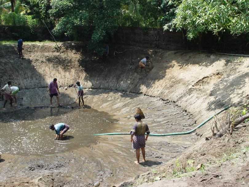 После спуска воды со дна собирают все, что можно считать лишним для данного водоема. Как правило, если пруд небольшой, убирают не только собственно посторонние предметы, но и органические отложения естественного происхождения. Механическая чистка пруда от ила своими руками часто позволяет открыть родники, устранить слои органики, убрать слишком разросшиеся растения.