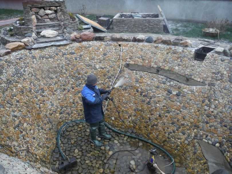 На очищенное дно наносится покрытие, которым может быть песок, мелкие камни, глина. Очищенный водоем наполняется свежей водой.
