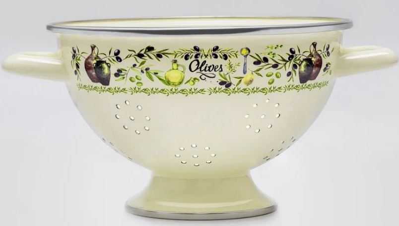 Классическая российская модель, которая используется многими домохозяйками. Главная особенность модели – простота. Для изготовления использовался менее качественный материал, но если аккуратно обращаться с дуршлагом, то никаких проблем не возникнет. Форма изделия – круглая. Присутствует качественное эмалированное покрытие, которое сохраняет приятный внешний вид, а также легко очищается.