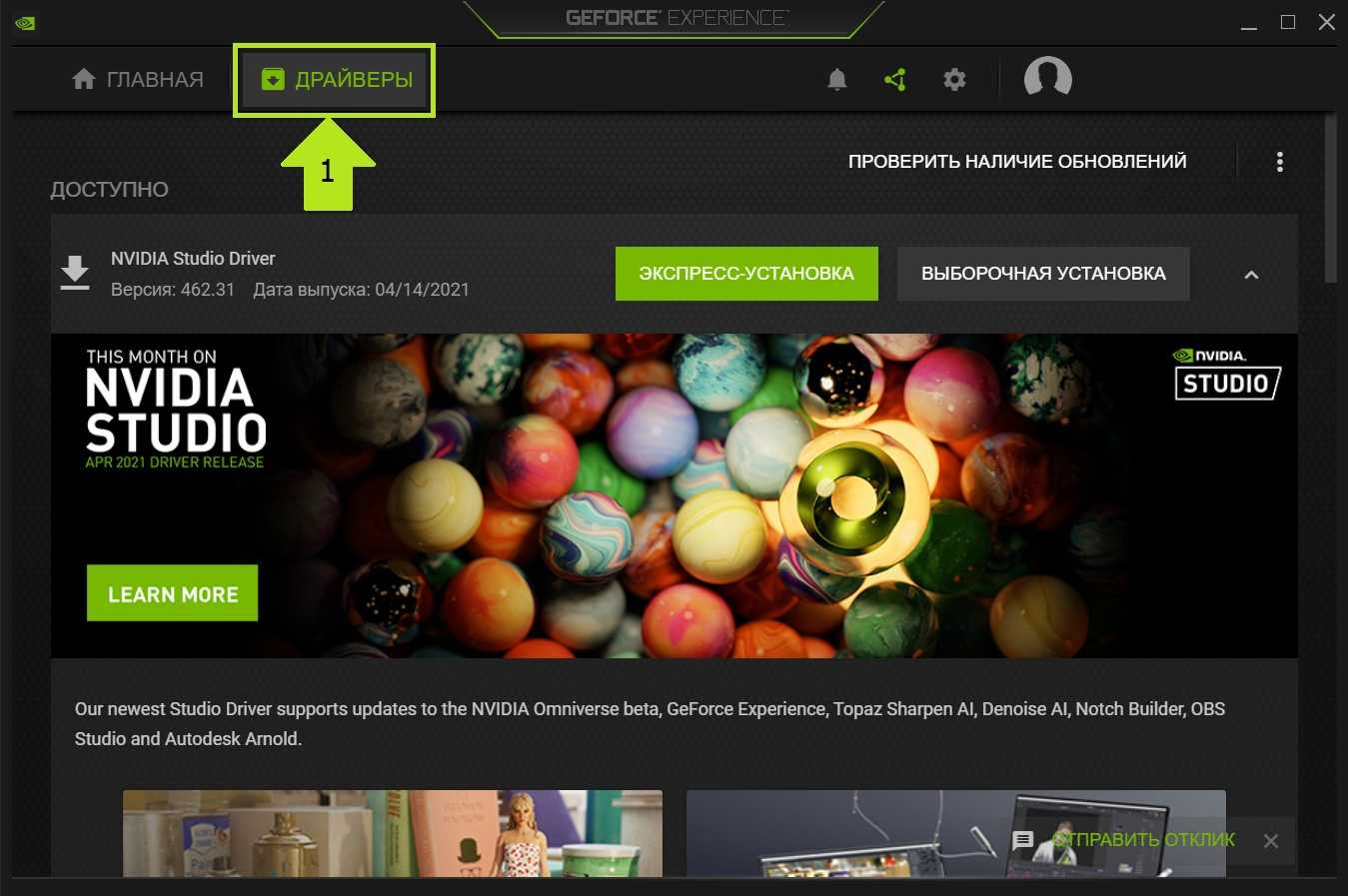 Драйверы NVIDIA Studio повышают стабильность работы приложений, особенно если запустить несколько программ одновременно.