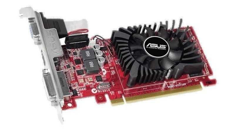 ASUS Radeon R5230-SL-2GD3-L — совсем бюджетное решение для тех, кому просто нужна видеокарта, потому что, например, сломалась старая. Это надежная, тихая, низкопрофильная офисная карточка со старой медленной памятью. Совсем не подходит для игр.