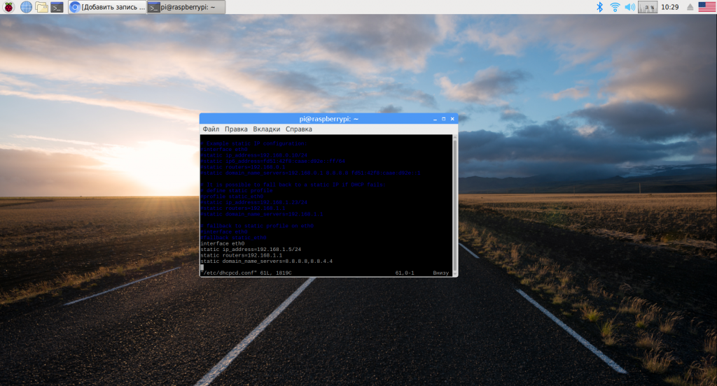 Теперь после перезагрузки Raspberry Pi устройство будет игнорировать то, что говорит ему роутер по DHCP и брать именно указанный IP-адрес. В теории подключение к сети будет выполняется быстрее. Но на практике лучше всё же использовать DHCP.