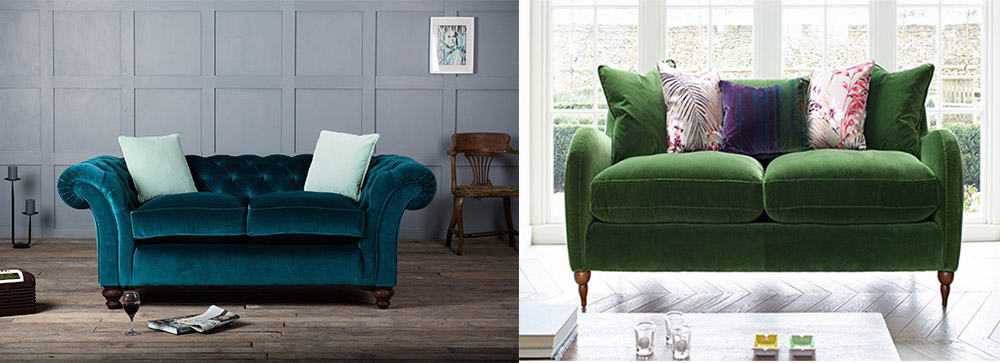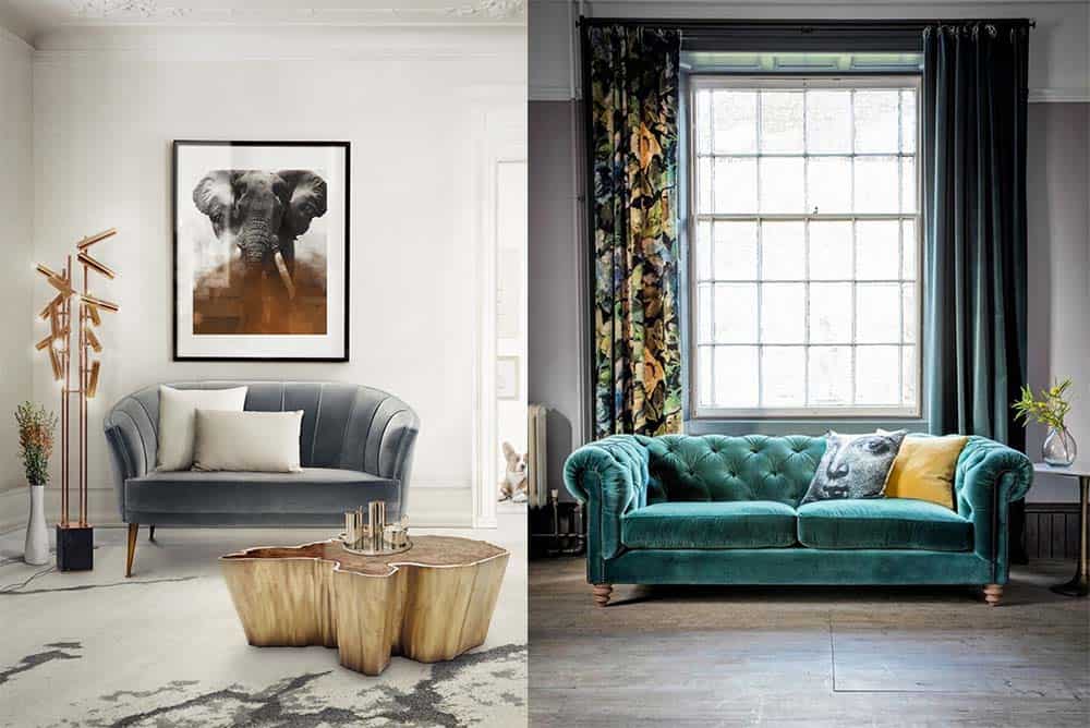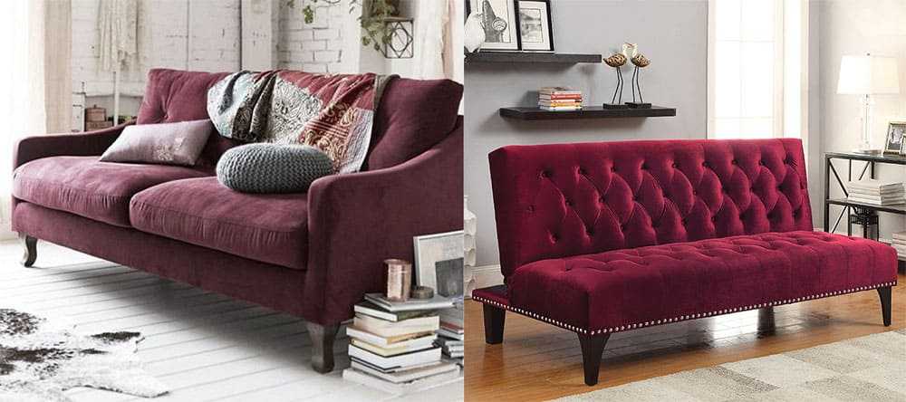 Роскошные диваны с бархатистой обивкой, как в настоящих дворцах, всех оттенков красного и утонченных “фруктовых” тонов розового набирают все большую популярность.