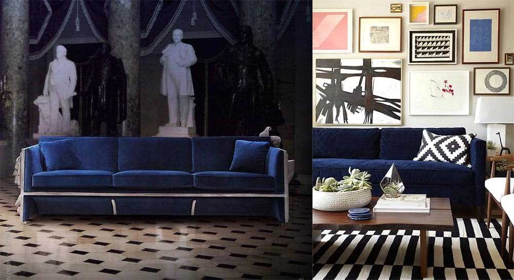 Ярко-синие, голубые диваны, а также деним-оттенков – не редкость среди новейших моделей.