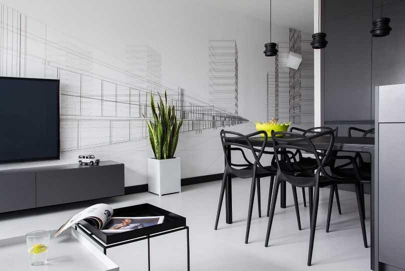 Хай-тек или лофт часто имеют открытую планировку, где разделение на зоны выполнено за счет оформления интерьера. Для такого дизайна барная стойка – превосходный вариант. Пластиковые изделия изготавливают в любом стиле, цвете, форме. Это очень легкие и удобные варианты, но они делают интерьер «дешевым». Пластик лучше оставить для террасы на даче или в загородном домике.