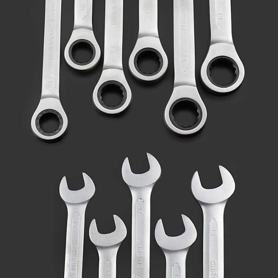 Кроме этого, в продаже можно встретить варианты исполнения, которые позволяют добраться до самых сложных мест путем установки сменных элементов. Классификация ведется и по типу используемого материала при изготовлении: чаще всего применяется сталь, но она может быть устойчивой к воздействию коррозии или обычной. Гаечный ключ с трещоткой может иметь рукоятку различной длины.