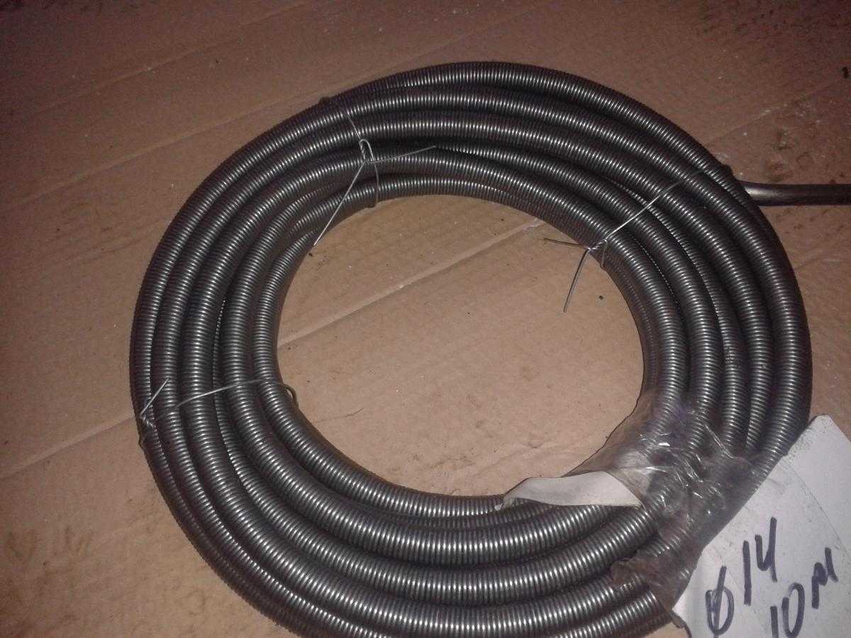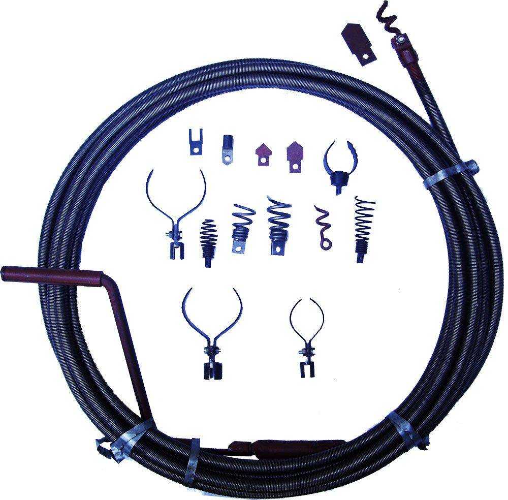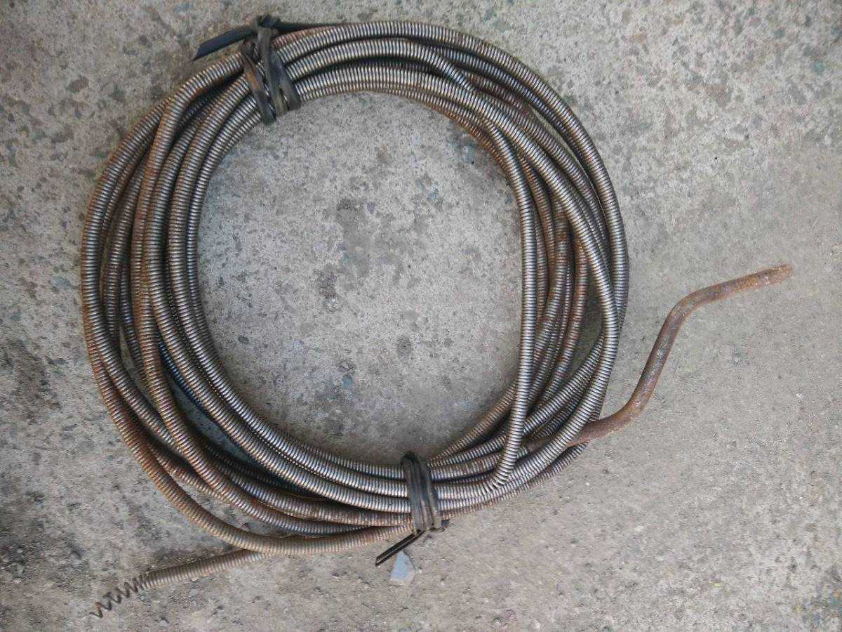 Пружинные тросы для прочистки канализационных труб относятся к категории профессиональных инструментов. Их длина −25-60 метров, а диаметр варьируется в пределах 9−16 мм.