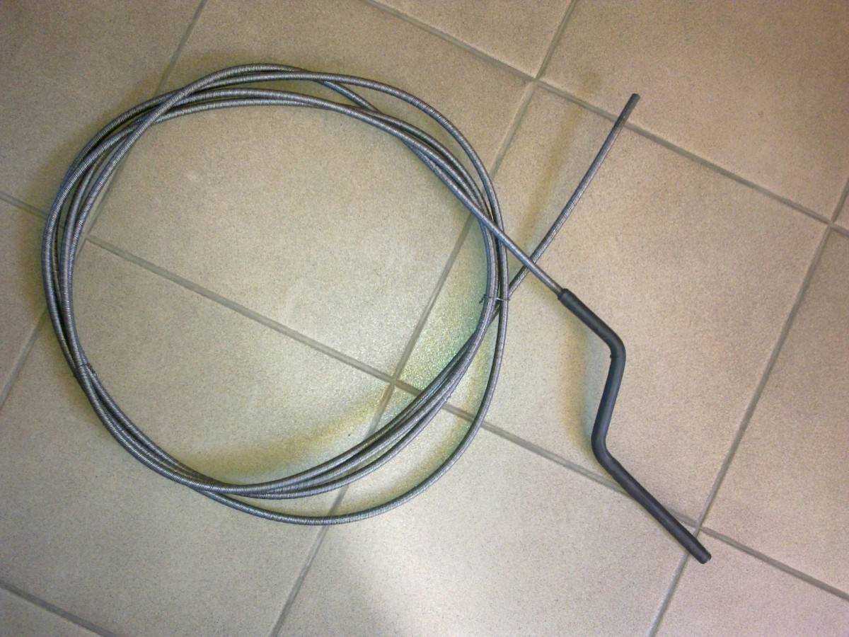 Трос с сердечником. Это профессиональный инструмент, который можно использовать для продавливания (проталкивания) сорной пробки. Обычной спиралью сделать нечто подобное сложно из-за ее большей мягкости и сжимаемости.