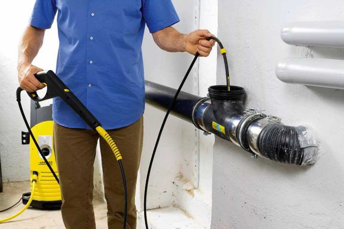 - Сложные засоры надо пробивать постепенно, вытаскивая прибор наружу и промывая насадки.
