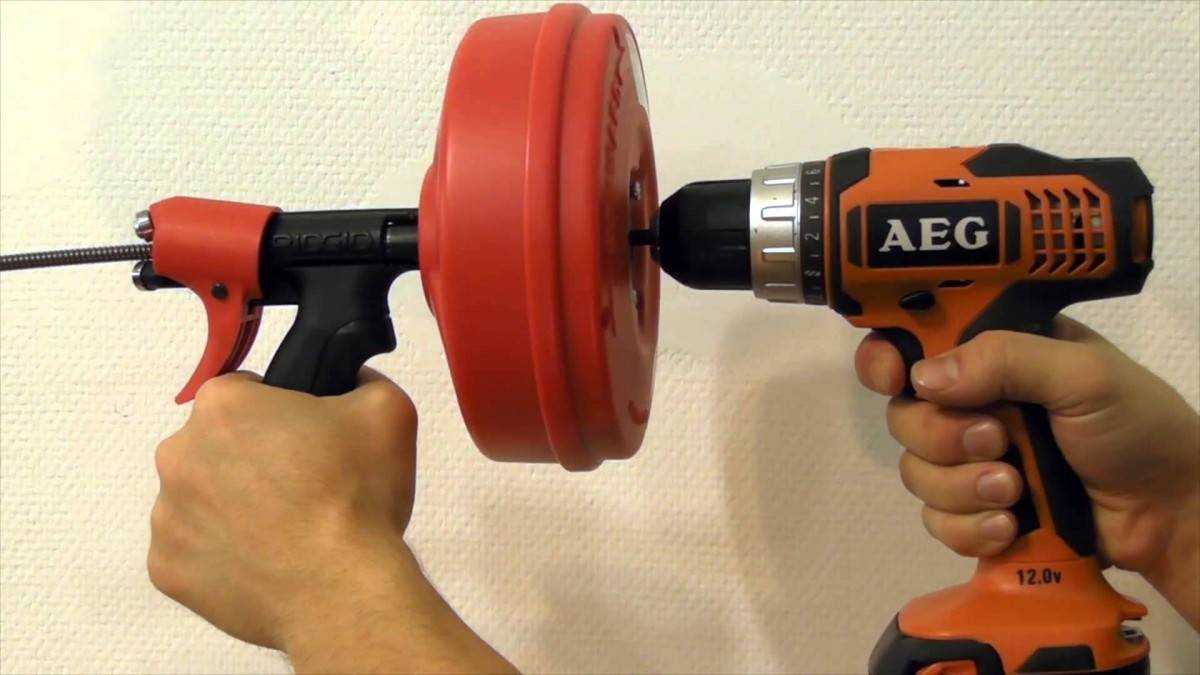 Самый простой способ облегчить себе прочистку труб канализации – это дополнить трос электрическим приводом в виде дрели или шуруповерта, только включать их надо будет на малых оборотах