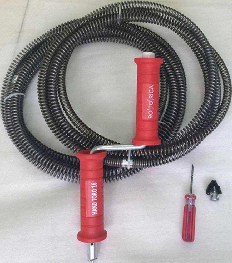 На одном конце троса установлена рукоятка в виде коловорота, которой производятся вращательные движения. Обычно длина такого приспособления варьируется в диапазоне 2,5−5 м, диаметр − 6 мм. Тонкий, гибкий и упругий трос легко преодолевает изгибы и повороты канализационной трубной разводки.