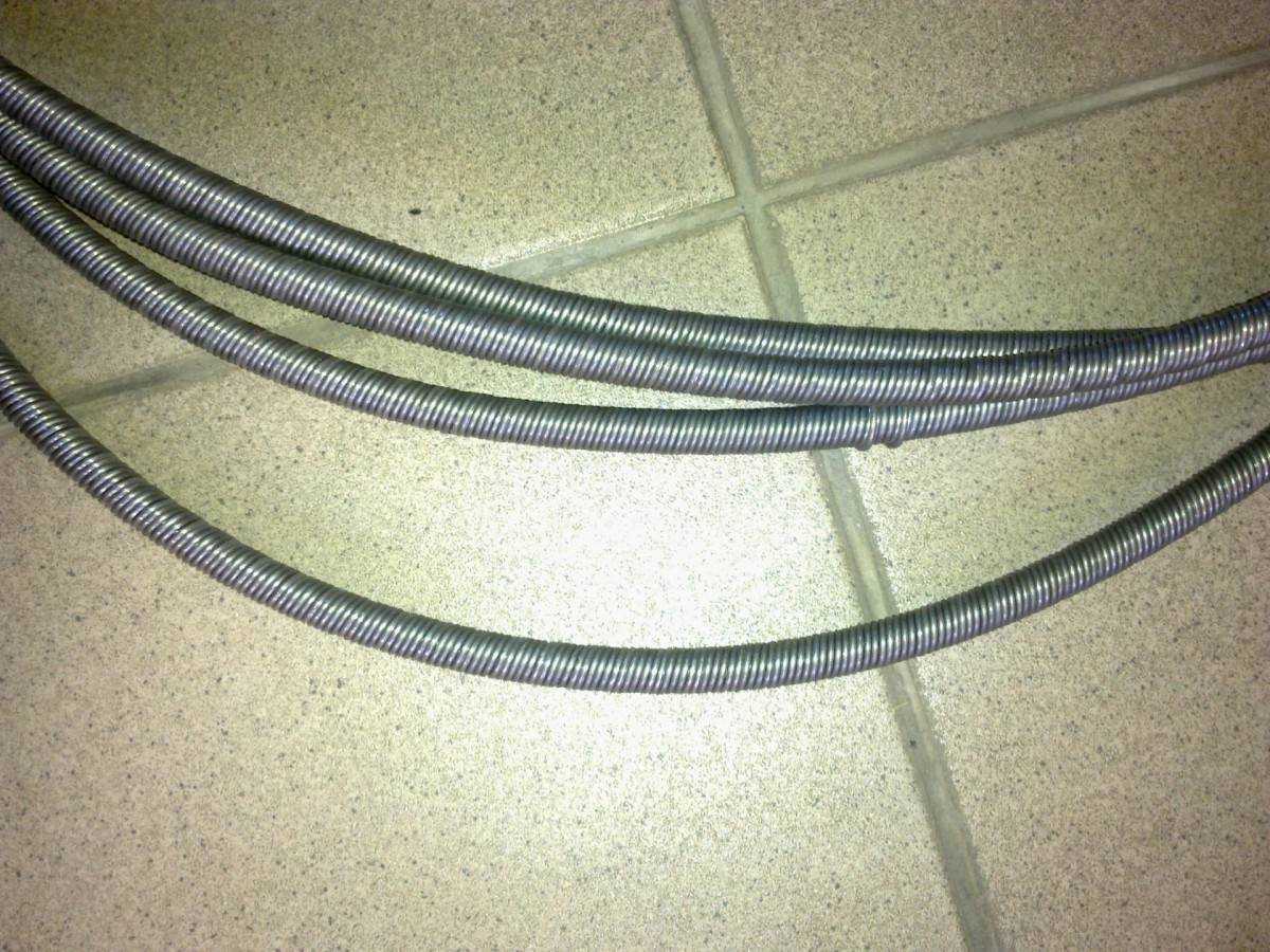 Есть модели, спираль у которых снаружи покрыта прорезиненной оболочкой, защищающей внутренние стенки труб от механических повреждений металлом. Но в большинстве случаев сантехнический трос – это просто стальная пружина без какой-либо оплетки.