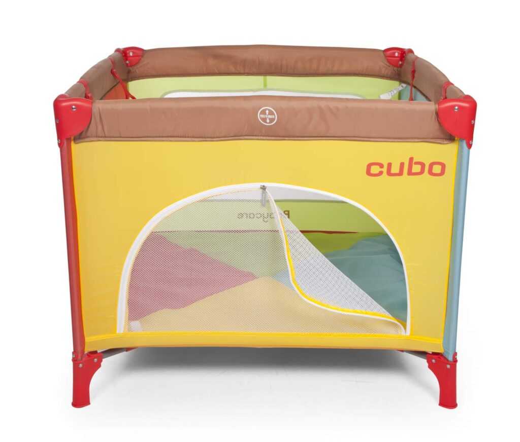 Металлический корпус в форме куба, по бокам стенки выполнены из натянутого текстиля. Конструкция собирается, как зонт, имеет запирающий механизм. Максимальный возраст, который разрешен производителем – 3 года.