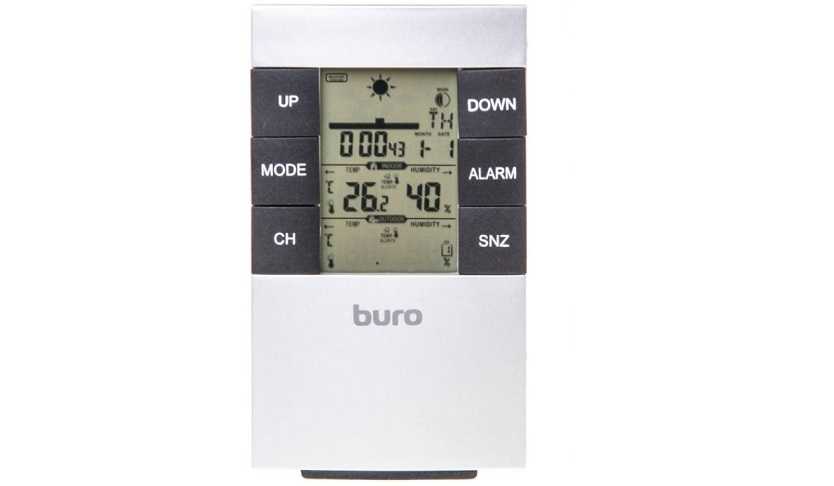 Buro H127G – это устройство с беспроводным датчиком, способное измерять влажность и прогнозировать погоду. Аппарат обладает автономным питанием и встроенными часами.