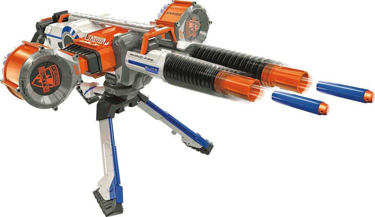 Элит Ринофайер – самый крутой Нёрф в 2020 году. Это сильное оружие идеально подходит на роль основного в игре. Оно устанавливается на треногу, но вес имеет небольшой, поэтому может использоваться даже девочками.