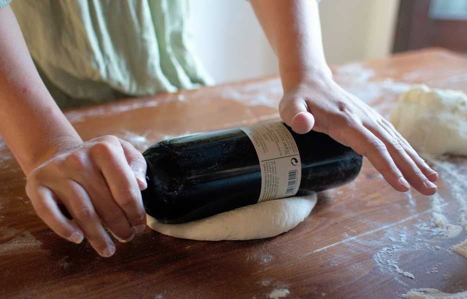 - Винные бутылки, как правило, тяжелые, что позволяет легко использовать этот вес для раскатывания теста. Их можно использовать, когда они пусты или заполнены.