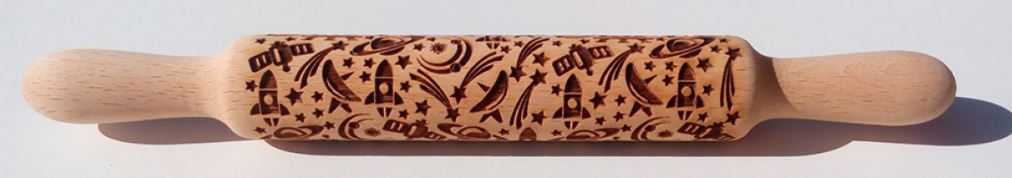 Скалка с оттиском поможет приготовить красивое печенье с рисунком, сделать необычные коржи для торта. Это, как правило, деревянные скалки с нанесенным узором по всей поверхности – это могут как цветочки и лепесточки, так и иероглифы и древние письмена. Для того чтобы испечь необычные кондитерские изделия, стоит всего лишь прокатить такой фигурной скалкой для печенья по слою теста и выпечь его в духовке.