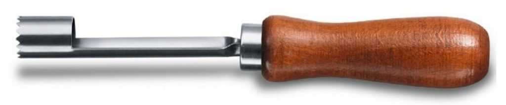 Этот кухонный инструмент предназначен для извлечения косточек и других плотных и твердых включений. Также может использоваться для удаления сердцевины из выпечки, для ее последующего заполнения джемами, кремами и другими сладкими заправками. Для извлечения желаемого участка не потребуется прикладывание усилий. Лезвие сделано из высококачественной углеродистой стали, и не подвержено коррозии. Для изготовления ручки используется нейлон, который окрашен под дерево. Выглядит конструкция стильно.
