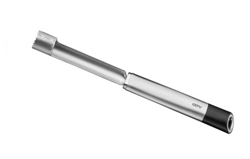 Эта прочная и долговечная конструкция предназначена для удаления плотных включений. Подобные манипуляции не требуют дополнительных усилий, за счет наличия рельефного клинка. Для изготовления режущей кромки используется бесшовная технология, которая благоприятно сказывается на эксплуатационном сроке изделия и удобстве в его последующем применении. Внутри изделия грязь не будет накапливаться. Помимо зубчатых краев, устройство имеет полукруглую форму. После извлечения конструкции, сердцевина сама выпадает на стол.