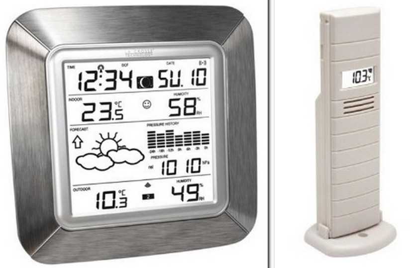 Климатический прибор с множеством функций и возможностей, способен предсказывать погоду, оснащён выносным беспроводным датчиком, но может подключать к себе до 3-х экземпляров таких устройств. Функционал метеостанции позволяет сохранять показания температуры, выбирать единицу измерения, измерять уровень комфорта, устанавливать часы и будильник, обычный и лунный календарь. На дисплее отображается атмосферное давление (есть барометр). Имеется автоматическая синхронизация DCF-77.