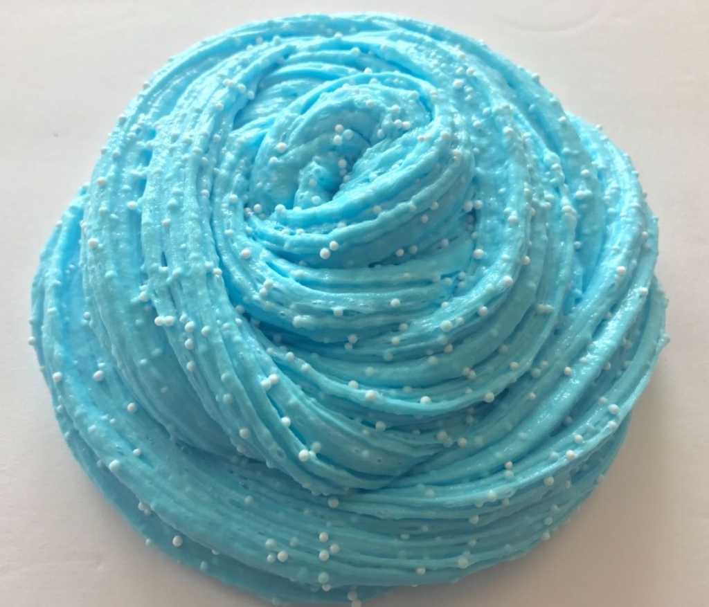 Лизун светло-голубого цвета, который по консистенции похож на многие остальные, но есть одно существенно отличие. Слайм айсберг в раскрытом виде покрывается твёрдой корочкой.