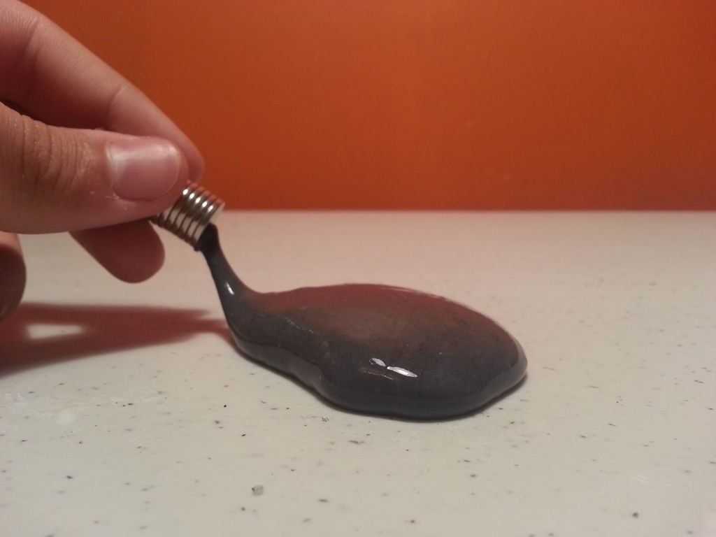 Этот слайм может притягивать к себе гвозди и скрепки. По плотности он довольно твёрдый и бывает всего нескольких оттенков – чёрный, золотистый, красный и синий.