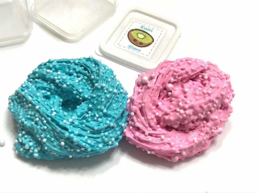 Этот слайм хорошо держит форму, при изготовлении в него добавляются пенопластовые шарики небольшого размера, которые не вылетают при растягивании, а при нажатии приятно хрустят.