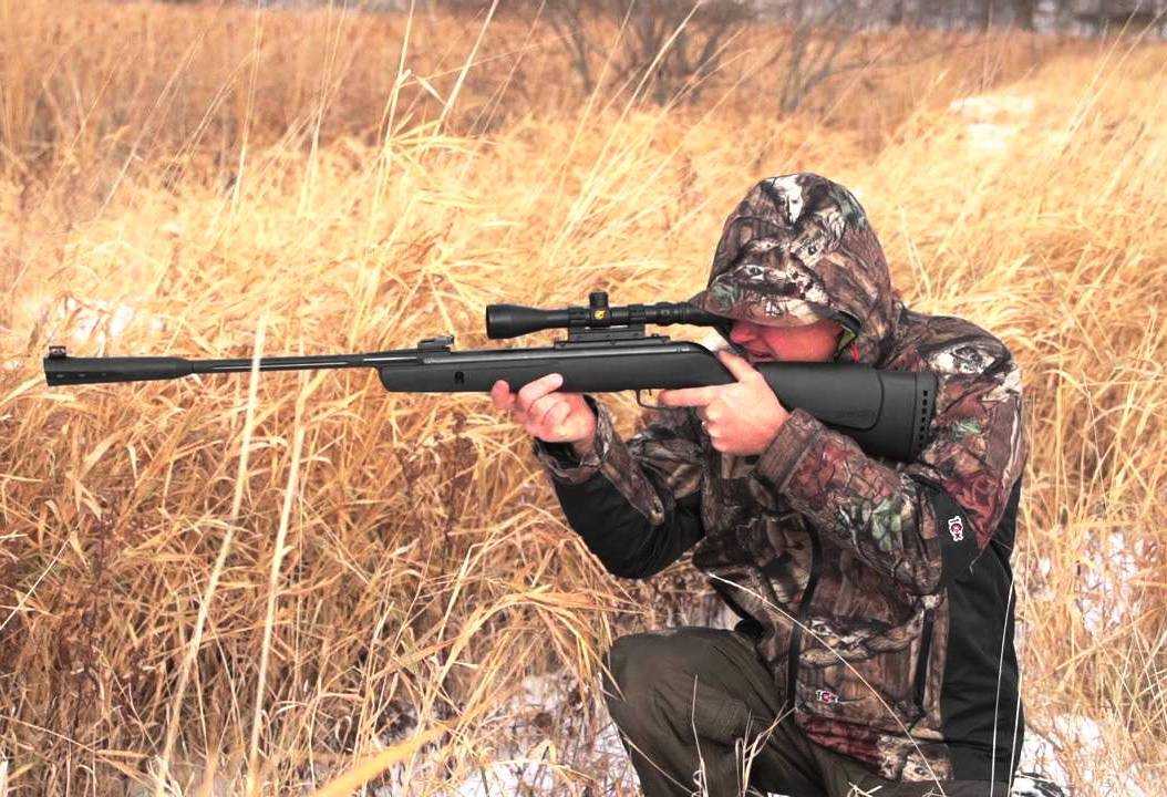 - Gamo Hunter Классическая «переломка» от испанцев, являющаяся отличным примером того, как нужно сочетать высокое качество с низкой ценой. Оружие выпускается в пластиковом и деревянном вариантах, однако в обоих случаях стоимость не превышает 6 тысяч рублей. Помимо встроенного компенсатора, модель также отличается наличием фиброоптической нити на стандартных прицельных приспособлениях, что позволяет использовать винтовку даже в сумерках.