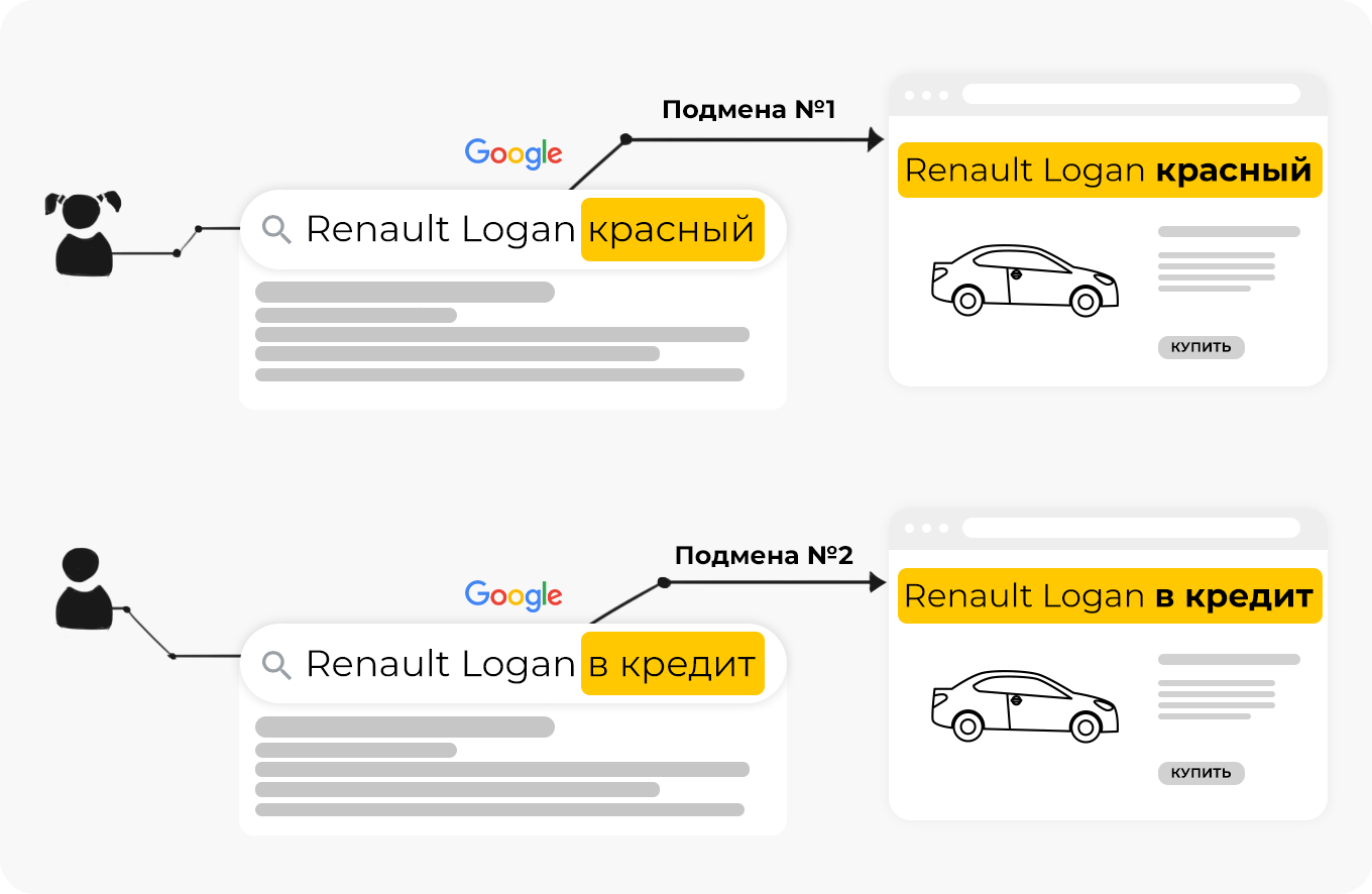 Показывайте каждому посетителю персонализированный текст на сайте с учётом поисковой фразы, по которой он к вам перешёл или других параметров, например, региона. Подменяйте заголовки и тексты на страницах, чтобы они точно соответствовали его потребностям.
