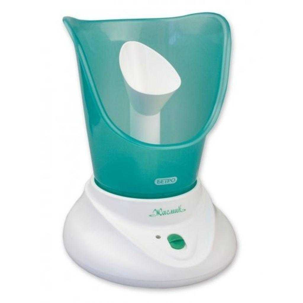 Ингалятор Бетро Жасмин имеет обьем 125 мл и вес 550 гр. В комплекте поставляются сам ингалятор, мерный стаканчик и 2 насадки: для лица и ароматерапии. Данный прибор можно использовать не только для лечения заболеваний верхних дыхательных путей, но и в качестве сауны для лица. Распаренная таким образом кожа хорошо очищается от загрязнений и лучше воспринимает активные компоненты уходовой косметики. Прибор работает от сети.