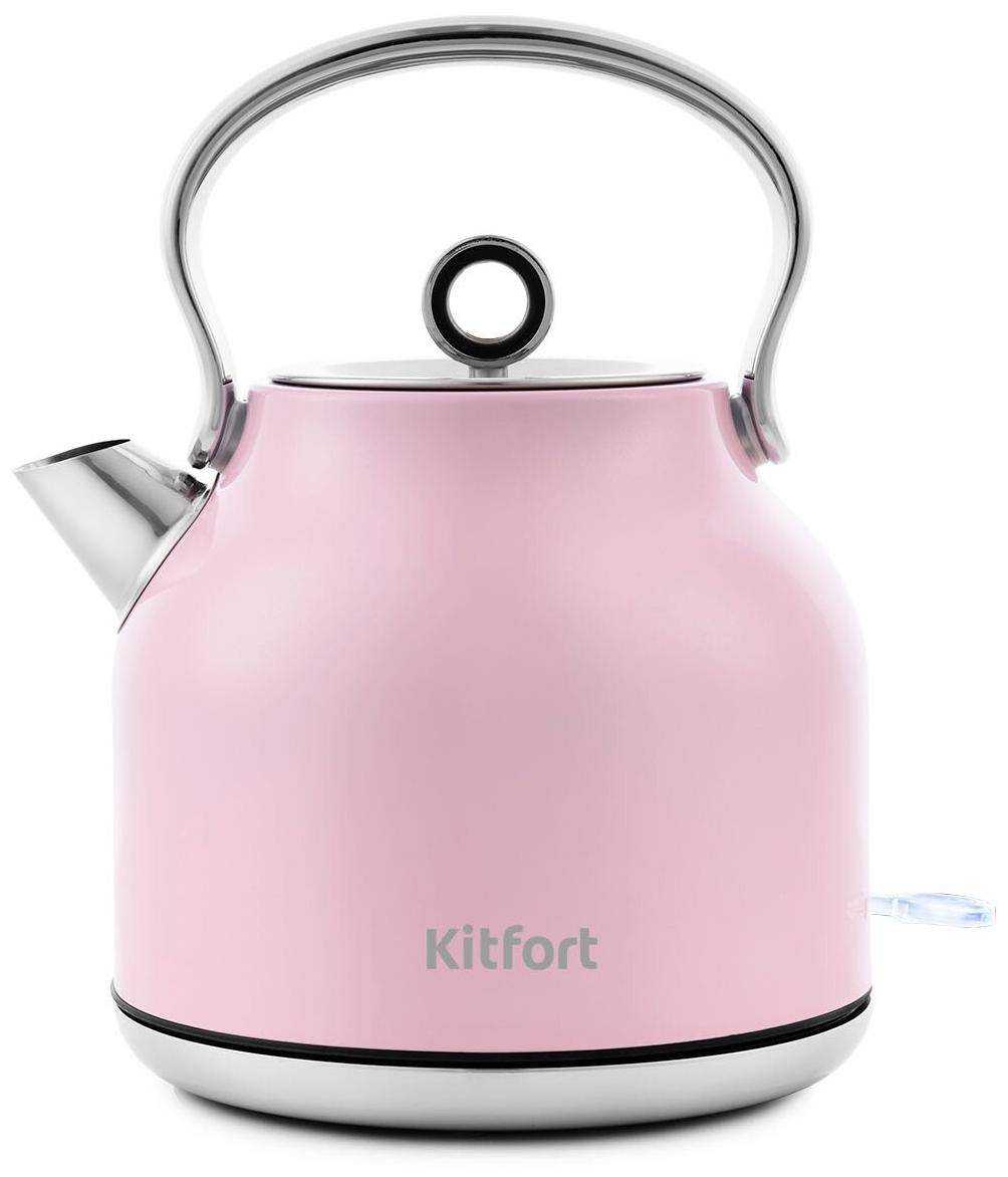 - Kitfort. Бренд, который также предлагает недорогие модели электрических чайников, выполненных из разных материалов. Отдельное место в ассортименте занимают модели, оснащённые подставкой с сенсорными кнопками управления.