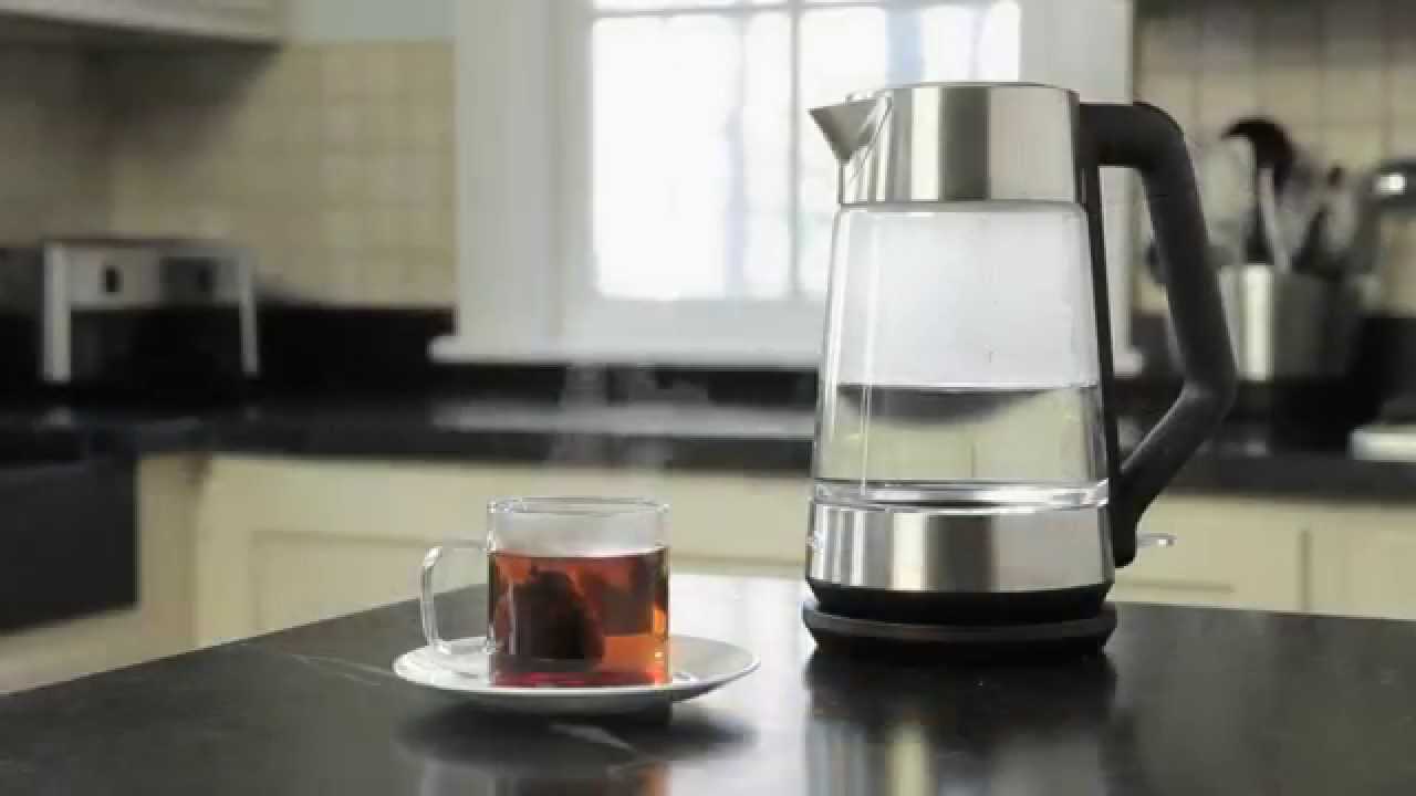 Воздушно и красиво смотрятся изделия из закаленного стекла. Во время нагрева воды можно понаблюдать за появляющимися пузырьками на поверхности жидкости. Экологичность материала обеспечивает отсутствие вредных токсичных веществ в воде при нагревании. Стоимость таких изделий довольно высока, поэтому их может себе позволить не каждый владелец жилища. Хрупкость стекла не может обеспечить долговечность такого чайника, а также уход за этой посудой требует особого подхода.